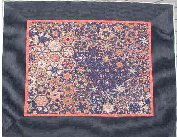 The second was made with a fabric that had fish swimming in a stream- small bits of the fish are visible in a few of the blocks.