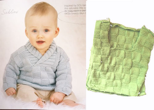 I made no progress on Heather Jones’ West Chester quilt or Violet Craft’s Bunny blocks (both mentioned in my last post). BUT there is one more project I have been working on.. my son and his wife are expecting a baby in 6 weeks (yeah!!), and are waiting to see whether it is a boy or girl. I decided on this pale green colour, and here is my sweater so far. The pattern is from a book by Sublime, and I am making it in a machine washable acrylic. Size one, so I have a lot of time to get it done.
