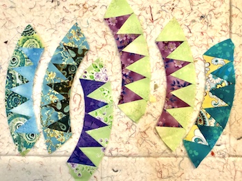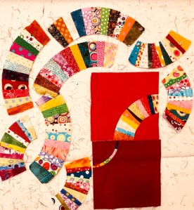 Last but not least are these paper-pieced arcs. The first set were used to make the quilt pictured below… that quilt has been sold, so I may make another version of it sometime soon. And finally, I was just playing when I made the bottom set of arcs-I didn’t have any kind of plan for them, and I still don’t!