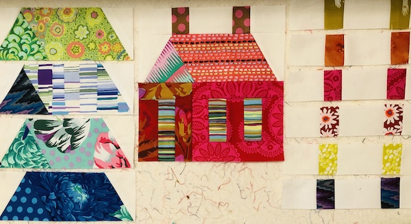A member of York Heritage Quilters Guild recently showed a quilt that blew me away- it used a lot of Kaffe Fassett fabric (of which I have a LOT- the colours are stunning) and the pattern wonderful. Last week I was still thinking of it, so I ordered the pattern: “The Village” by Kim McLean from Hyggeligt in St. Marys Ontario.