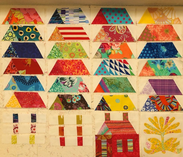 Working with these colourful fabrics certainly brightens my day! I made one appliqued block to prove to myself that this is doable. This quilt has so much applique in it that I should improve by the time I am done.