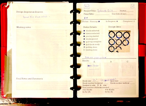 I am a person who loves to find the best way to organize things… So I bought a new binder, made a template page to use for my UFOs, and started.. see photo below. You will quickly realize that I had quite a bit of time devoted to this already.
