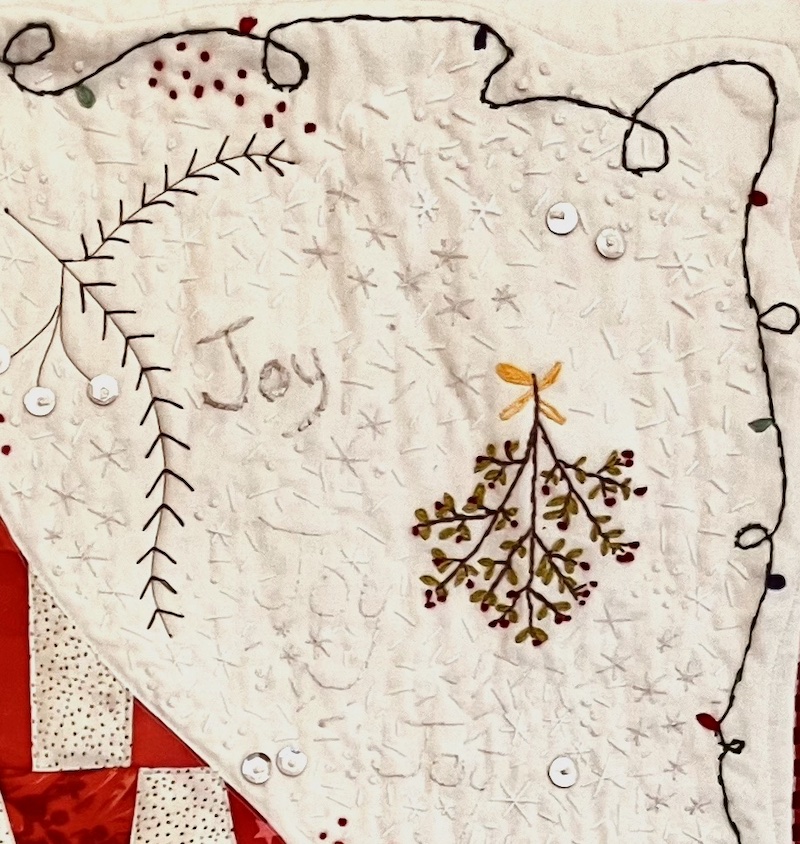 Etobicoke Quilters Guild had a challenge.. something that brings you joy. Well, I love everything about Christmas.. the colours, the lights, everything. So I decided to make a wall hanging of a Christmas ornament, and decorate the background with embroidery. I’ll be showing it in the challenge, but am looking forward to having it hang in my living room during the holiday season.