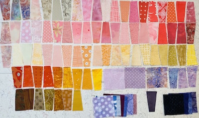 Below are images of the fabrics I had prepped, and the quilt starting to come together!