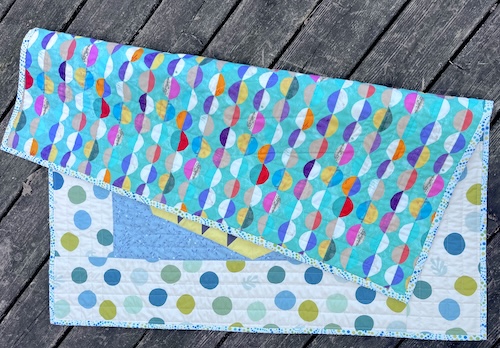 It is a small quilt, about 37″ square. I put a totally different fabric on the back. This would be a great baby quilt.. who doesn’t love stars and dots??