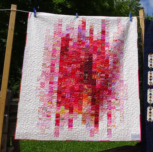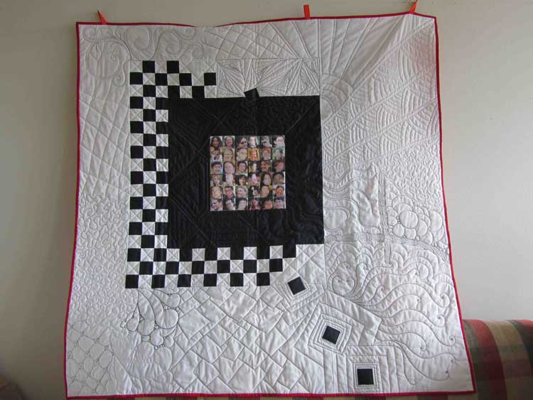 It was quilted by Deb Kopeschny of BloomingLife quilting, who was developing a real love of Zentangles at the time, so I suggested she quilt in black and white thread, and use her favourite Zentangles designs.