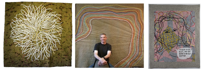 It was made for a challenge I set at Quilts at the Creek. We supplied some fat quarters to those interested in participating, and the quilt had to incorporate those fabrics in the completed quilt. The fabrics are the ones in the centre of my quilt, and I struggled to find something to make it stand out. I had it quilted (thanks again, Sandy!), and stared at it long and hard. Finally I came up with the idea of making bias binding and attaching it to the quilt. I loved the final look of the quilt, and was so happy with the bias binding idea I had “created”. One day I googled it, and found other quilts made using this technique. My favourite is Joe Cunningham, see his quilts below. Stunning!