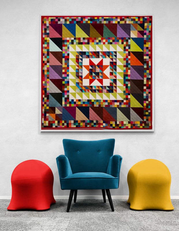 Because I do not plan or design my quilts when making a quilt, I sometimes end up with one that is too small for a bed or throw, and too precious for a table cover. My solution is to put a hanging sleeve on it, and hang it on the wall. This puts a smile on my face and joy in my heart, as I am a proud mother to my quilts. I have a series of these, and rotate them every now and then.