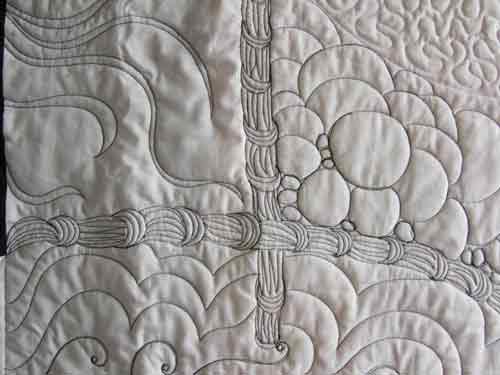It was quilted by Deb Kopeschny of BloomingLife quilting, who was developing a real love of Zentangles at the time, so I suggested she quilt in black and white thread, and use her favourite Zentangles designs.